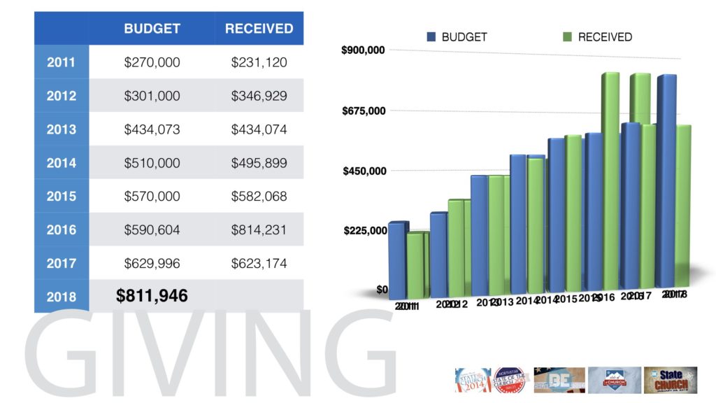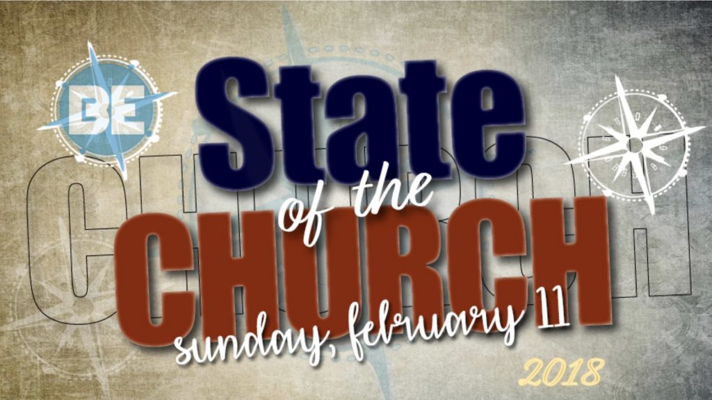 After two failed attempts, we were finally able to celebrate State of the Church 2018 on February 11. Jeff was sick on January 25, and an unexpected snow caused cancellation of services on February 4.